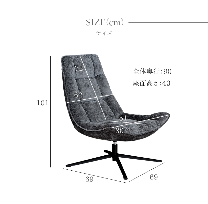 幅80×奥行き90×高さ101cm / 座面高:43cm