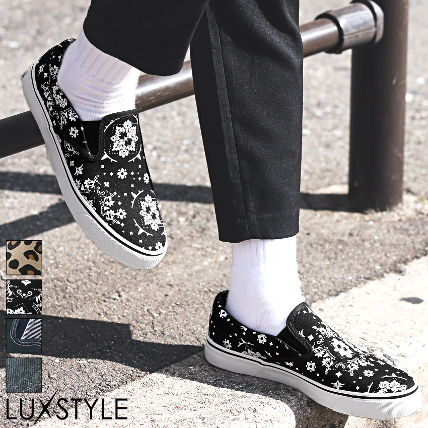 セール スリッポン メンズ シューズ スニーカー 靴 総柄 ペイズリー レオパード 豹柄 デニム カジュアル