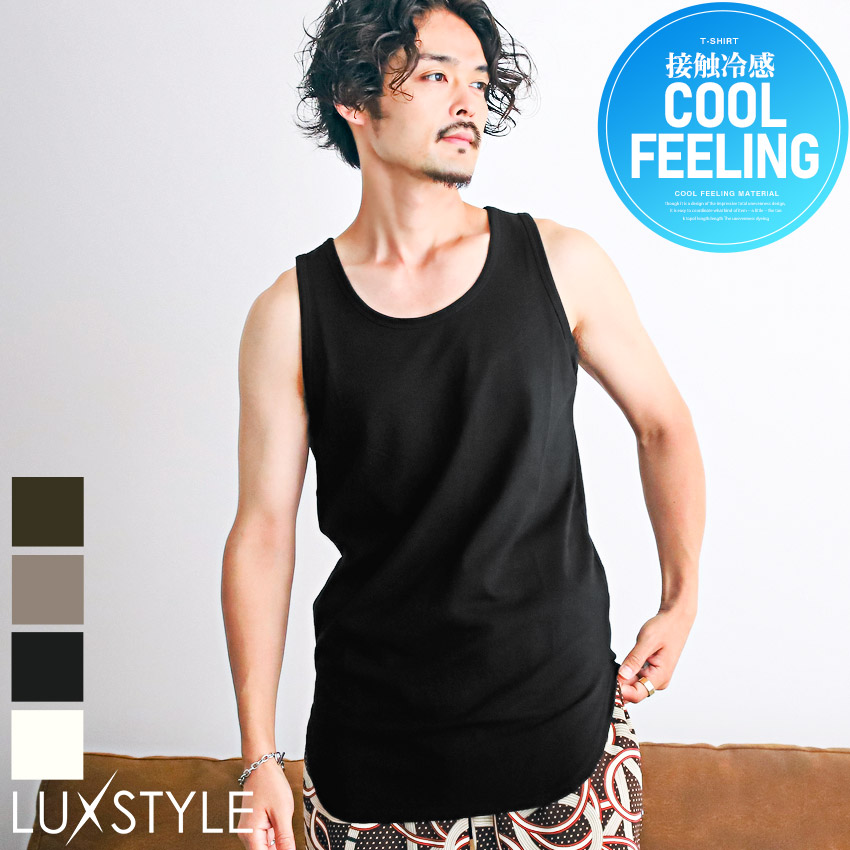 タンクトップ メンズ ロング丈 ビッグシルエット 接触冷感 ひんやり 無地 レイヤード