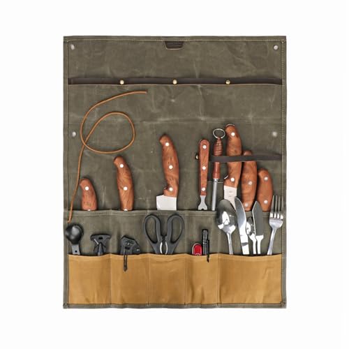・優れた収納力数人分の食器をこれひとつで持ち歩けるほどの容量があり、家族でのアウトドアで活躍します。ツールロールタイプはコンパクトにし、保管と持ち運びはとても便利。食器は展示用です。