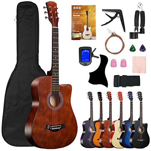 アコースティックギター 38インチ 入門練習ギター タイプ 入門練習ギター 14点セット簡易教則 練習ギター 初心者(日本語) ョコレート