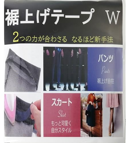 ・?糸も針も不要裾上げテープWは、洋裁が苦手な人や忙しい人に便利。洗濯機やドライクリーニングにも対応。ダブル使用で強度が高く、様々な用途に使用可能。裾上げテープの接着力に不満の方におすすめ。