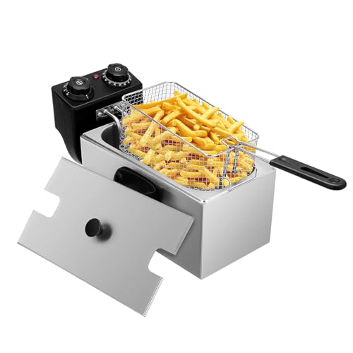 ・温度調節機能:60-200℃温度調も節搭載。温度調節ダイヤルを回して、60℃から200℃まで温度の切り替えを自由行えます。使用者には非常に便利。また、正確な油温をゲットすると、料理の美味しさを最大に発揮できますよ。 4L大容量タンク:オイルタンクは耐用性に優れているステンレスを採用したのでお手入れが容易です。タンク容量が4Lで日常生活やパーティーや業務などに使用されています。また、便利さを増加するため、揚げ用バスケットが付属され、本体の両側にもハンドルが付いています。