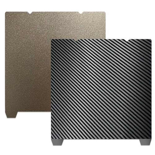 ・アップグレードされた両面印刷両面PET+PEIスプリングスチールプレート、片面はクラシックなカーボンファイバーPETフィルムです。 反対側はテクスチャPEIです。ゴールデンビーチの細かい砂のようなもので、非常に耐久性があり、高温にも強いです。数年前から人気があり、3Dプリンター愛好家の間で人気があります。1つのビルドプレートには2つの美しいパターンがあります。 プリントの下部にはユニークな模様が残ります。