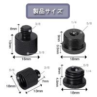 マイクスタンドアダプター 4個入り)(黒)5/8メスから3/8オスねじと1/4メスから5/8オスアダプターセット 変換ネジアダプター 固定ネジア