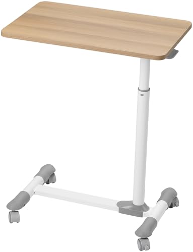 ETHU サイドテーブル ガス圧昇降式 ベッドサイドテーブル 無段階高さ調節 介護用ベッドテーブル キャスター付き 在宅勤務 在宅ワーク メープ