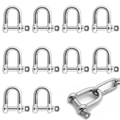 ステンレス製シャックル D型 バックル 蹄鉄 M5シャックル ミニ 10個 連結金具 しっかり固定する 耐荷重 防錆 耐久性 吊り、牽引 交換部