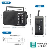 ・電池持続時間:アルカリ乾電池新品使用 イヤホン使用時…FM受信/約250時間、AM受信/約250時間 スピーカー使用時…FM受信/約150時間、AM受信/約150時間 外形寸法:(約)幅200×高さ120×奥行55mm(突起物含まず) 質量:約459g(乾電池含まず) 付属品:取扱説明書、書