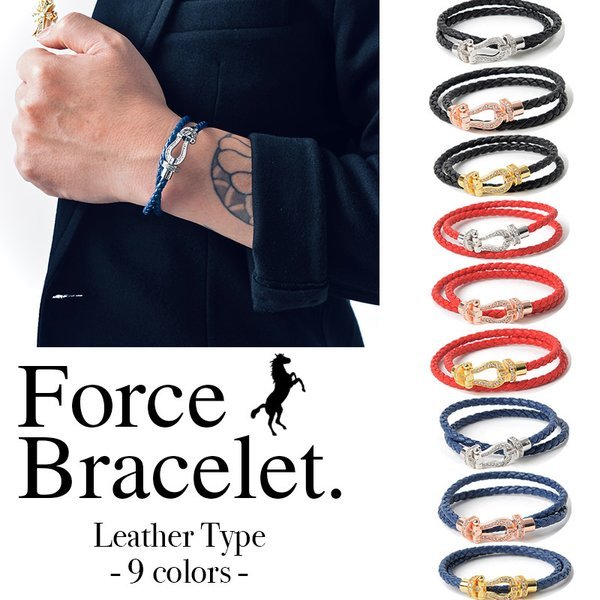 送料無料 フォースブレスレット ブレスレット メンズ レディース ペア お揃い カップル レザー 革 ゴールド 金 シルバー ジルコニア 馬蹄