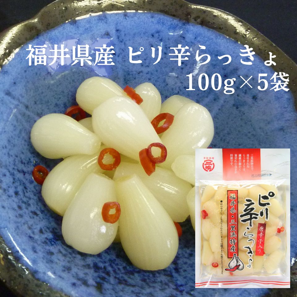 福井県三里浜産 三年子 ピリ辛らっきょ 100g×5個 セット 国産 らっきょう 漬物
