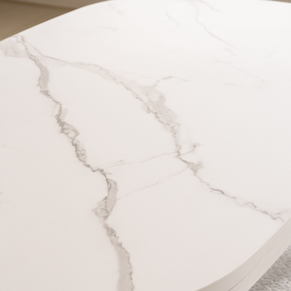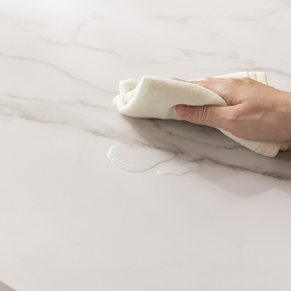 シンプルモダンな大理石調の天板シンプルながらも上品な大理石調の天板が、空間に洗練された印象をプラスします。
