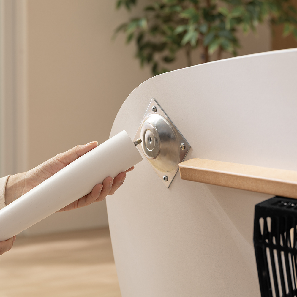 脚をねじ込むだけでしっかり固定できる構造。ドライバーなどの工具を使わず、誰でも簡単に組み立てられます。