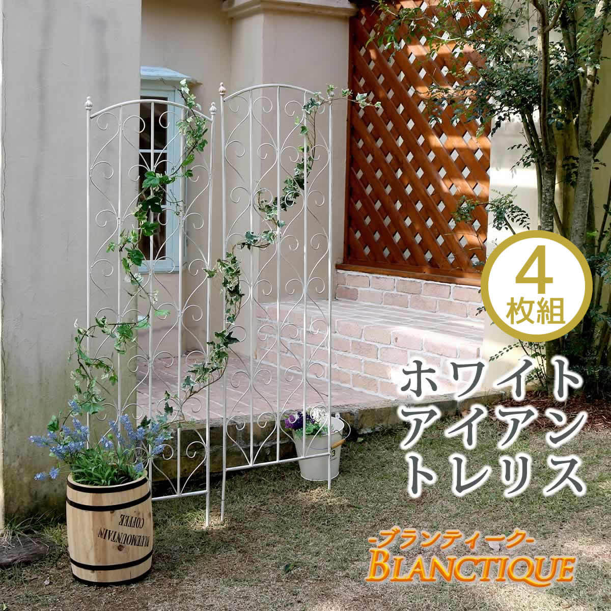 ガーデントレリス 4枚セット ホワイト 白 ガーデンフェンス アイアントレリス 庭 ガーデニング アンティーク加工 アイアンフェンス 幅42cm 奥行2.5cm 高さ147cm