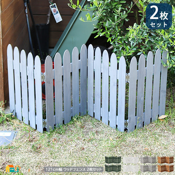 ウッドフェンス 2枚セット ガーデンフェンス 木製フェンス ライトブラウン ホワイト ダークグリーン グレー ミニフェンス おすすめ 幅121cm 奥行1.5cm 高さ44cm