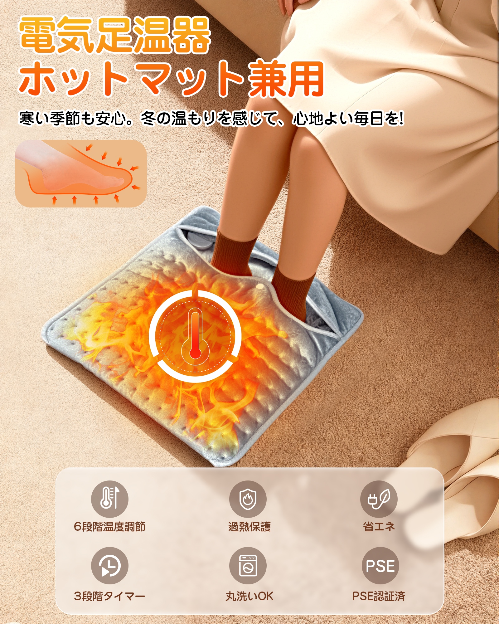 電気足温器 足温器 2025新商品 両面発熱 6段階温度調節 40*40cm 速暖 40~60℃ 日本製 過熱保護 タイマー機能 省エネ PSE認証済 洗濯機OK お宅用/オフィス用
