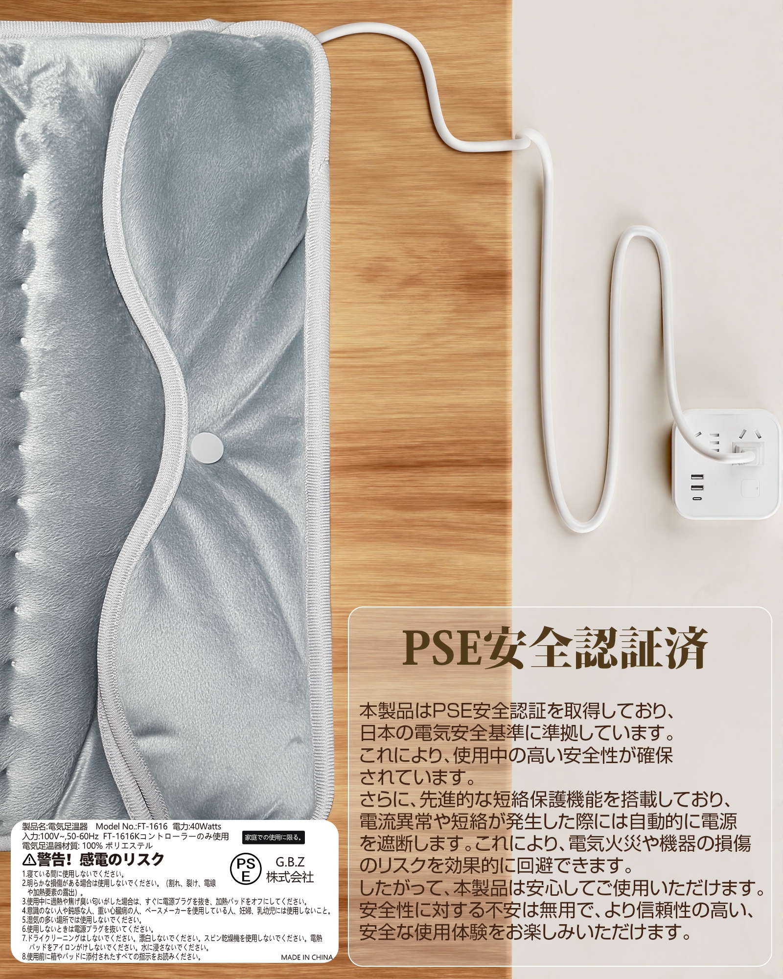 日本経済産業省 電気安全法に準拠したPSEマーク取得製品。日本の安全基準に合わせた設計で、毎日安心。