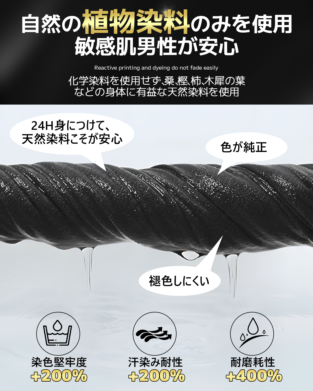 汗や加齢臭のニオイを抑える抗菌防臭素材、抗菌防臭試験済み(JSL1902菌〓吸収法)、男の気になる臭いを防ぎ、あなたの魅力を崩さない。部屋干し臭の対策にも。