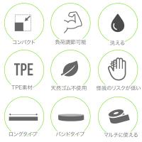 扱いやすいリング状のトレーニングバンドです。幅0.6cm・1.3cm・2.2cm・3.2cm・4.5cm・6.4cm・8.3cm・10.2cmのフルセットになります。素材は高耐久・高反発弾性で無毒無味なTPE素材を採用。これだけで、さまざまなトレーニングとストレッチ運動ができます。