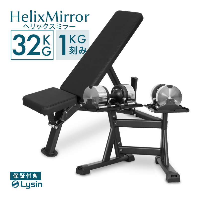 (レビュー投稿で2年保証) ライシン ヘリックスミラー 1kg刻み 32kg 2個 スタンドPro ベンチ セット 可変式 ダンベル メタルダンベル