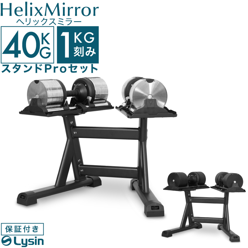 (レビュー投稿で2年保証) ライシン ヘリックスミラー 1kg刻み 40kg 2個 スタンドPro セット 可変式 ダンベル メタルダンベル