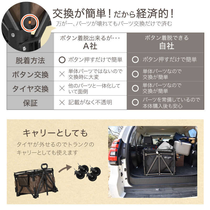 (レビュー投稿で2年保証) ライシン アウトドアワゴン 最大110L 拡張機能 キャリーワゴン Eシリーズ キャリーカート ミニ 折りたたみ