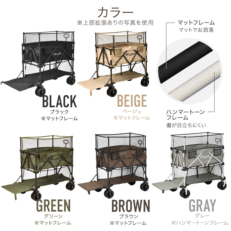 (レビュー投稿で2年保証) ライシン アウトドアワゴン Eシリーズ 2段 最大366L 上部拡張 あり なし 後ろ開け キャリーワゴン 大容量