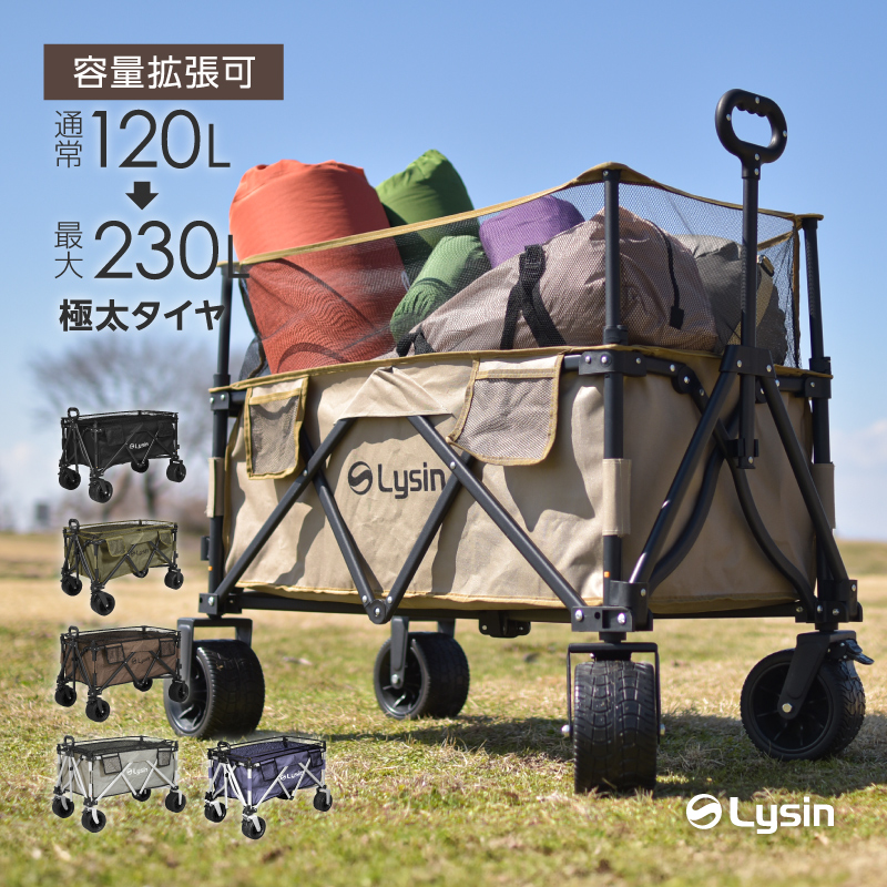 (アウトレット) ライシン アウトドアワゴン 最大230L 拡張機能 キャリーワゴン キャリーカート 大容量 折りたたみ