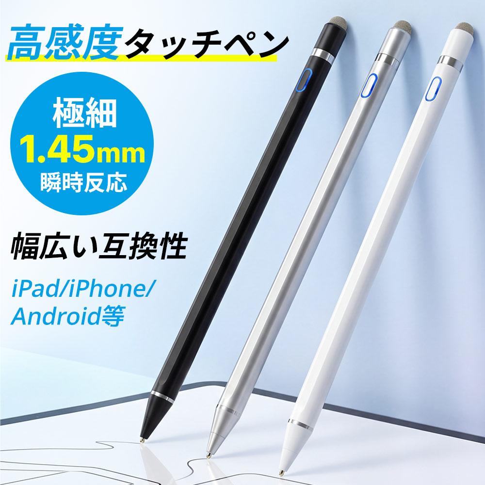 タッチペン iPad iPhone Android対応 極細 高感度 低遅延 USB充電式 軽量 スマホ タブレット対応 全機種対応 スタイラスペン