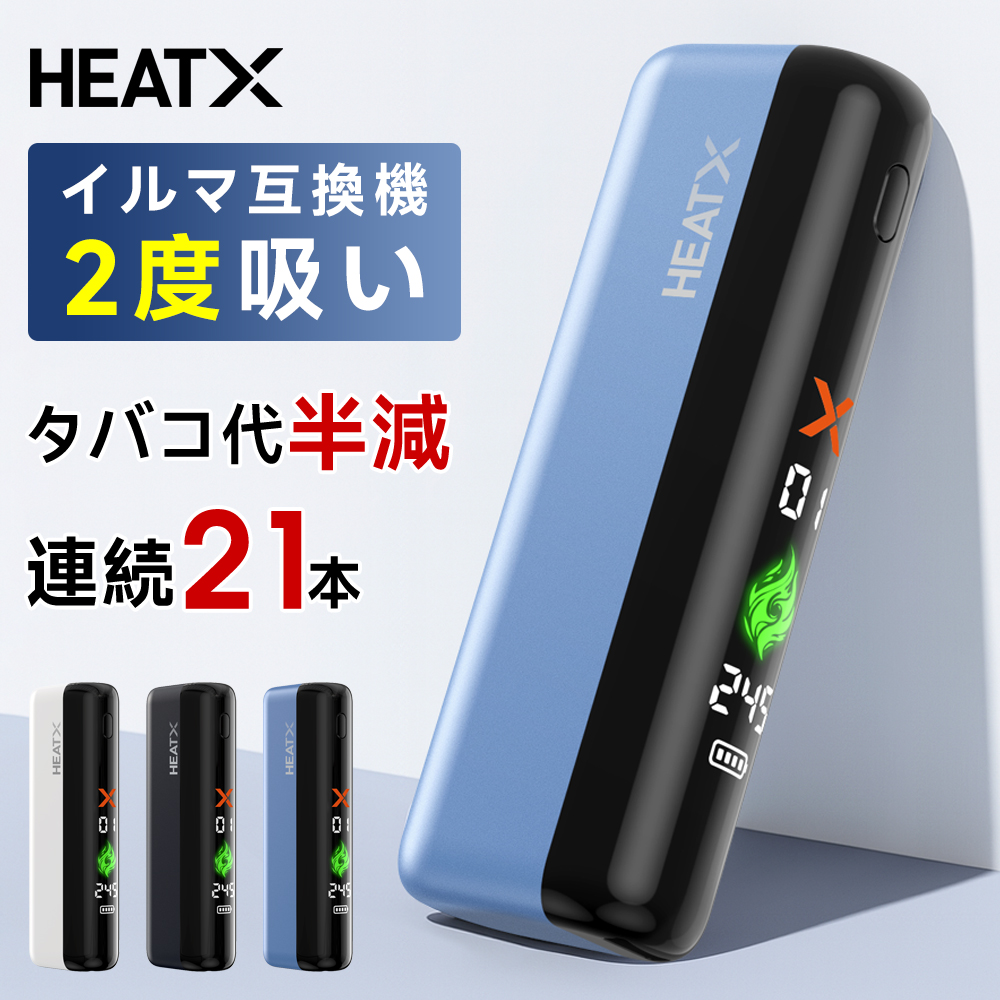 アイコス イルマ互換機 加熱式タバコ デバイス イルマ不要 1台で2回連続使用 高速予熱 21本連続使用可能 テリア/センティア対応 ディスプレイ搭載 残量確認
