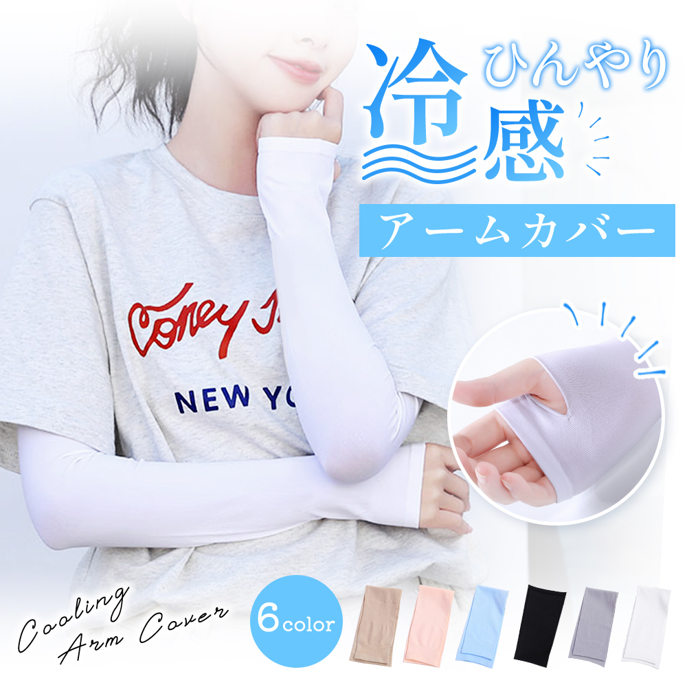 柔らかくてなめらかな手触り、水や汗で濡れると気化熱の作用により冷却効果があり、肌と接触した瞬間に温度が約-5℃を下げる効果、真夏中でもクールを感じられる冷感アームカバーです。