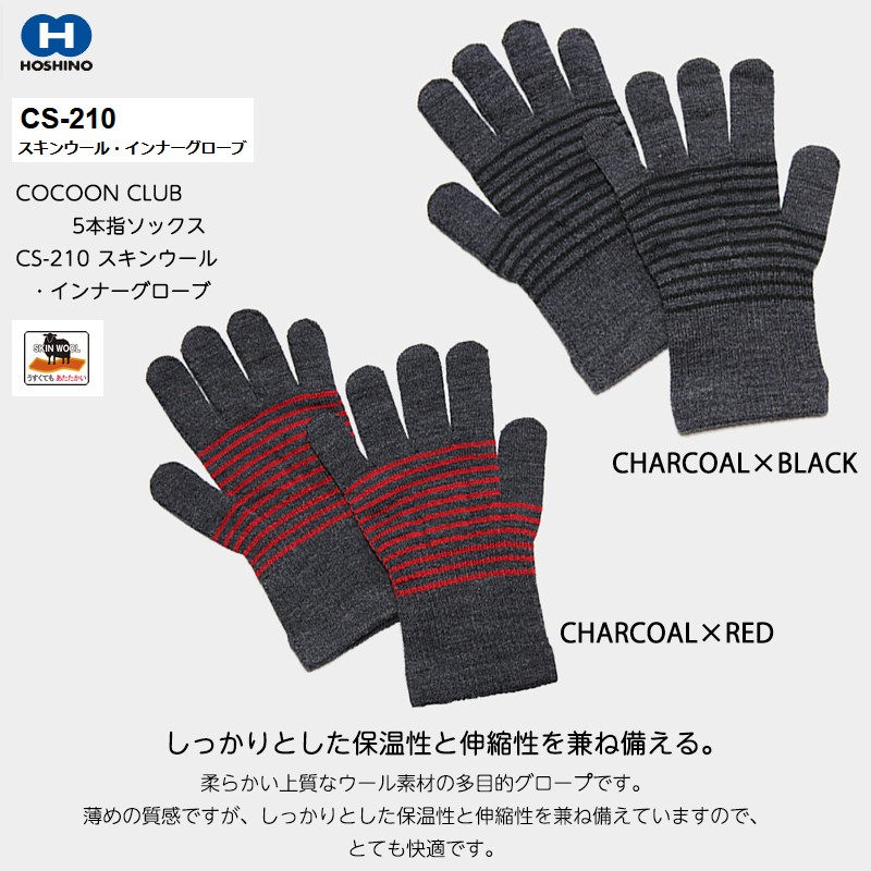 キーワード:保温 吸汗 速乾 薄手 インナーグローブ ホシノ COCOON CLUB CS-210 スキンウール・インナーグローブ 上質ウール素材 伸縮 多目的用 ウインタースポーツ スキー スノボ 日常使い 雪かき 手袋