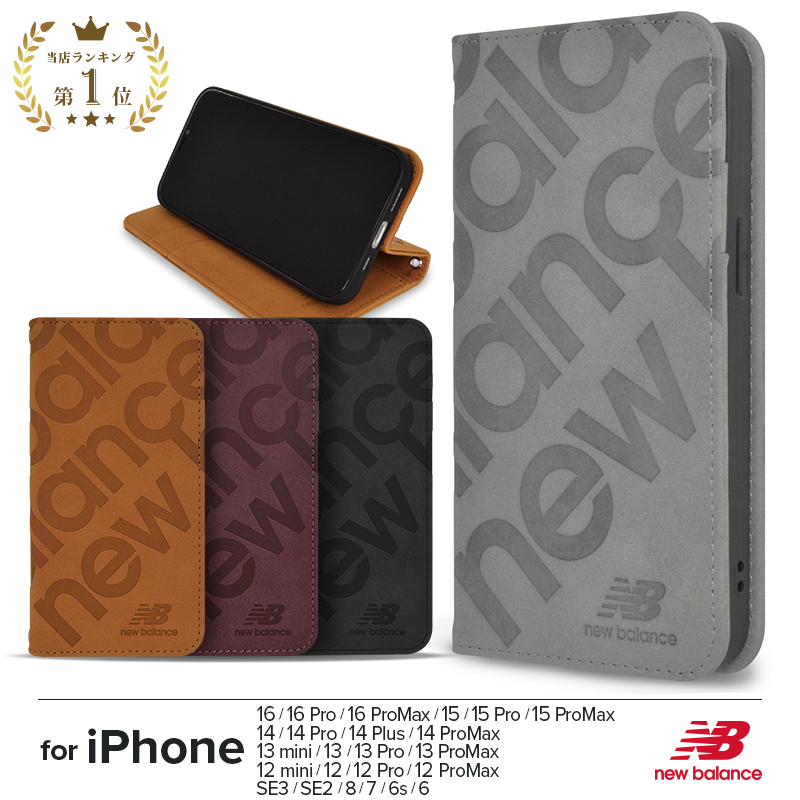 【上品で上質 New Balance iPhone手帳ケース】New Balance ニューバランスのスタンプロゴスエード手帳ケース。
