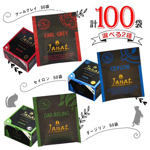 Janat ジャンナッツ 3種類から選べる2点 計100袋 アールグレイ・ダージリン・セイロン 送料無料 紅茶 ティーバッグ アソート 全3種