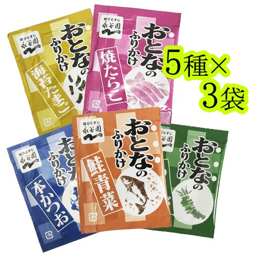 永谷園 おとなのふりかけ 5種×3袋 計15袋 海苔たまご・焼たらこ・本かつお・鮭青菜・わさび 送料無料