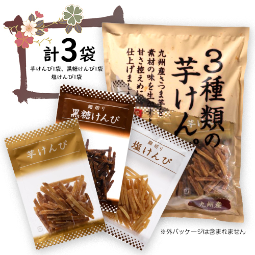 クリート 3種類の芋けんぴ 各3種×1袋【計3袋】芋けんぴ・塩けんぴ・黒糖けんぴ お茶うけ 芋かりんとう 送料無料