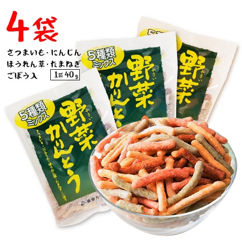 東京カリント 5種類ミックス 野菜かりんとう 4袋(1袋40g)さつまいも・ごぼう・にんじん・ほうれん草・たまねぎ 送料無料