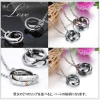 ペア ネックレス 男女セット 2連リング カップル アクセサリー 送料無料 サージカルステンレス ジルコニア 金属アレルギー 誕生日 プレゼント ミニポーチ付ac050