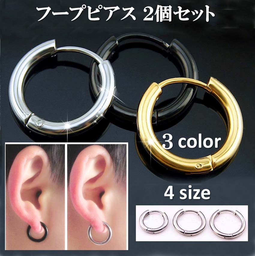 フープ ピアス 2個セット ステンレス 金属アレルギー 両耳ペア リング メンズ レディース プレゼント シルバー ゴールド ブラック ac058