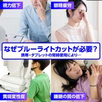 目の水晶体で吸収されにくく、網膜を傷つける恐れがある、ブルーライトを大幅カット。