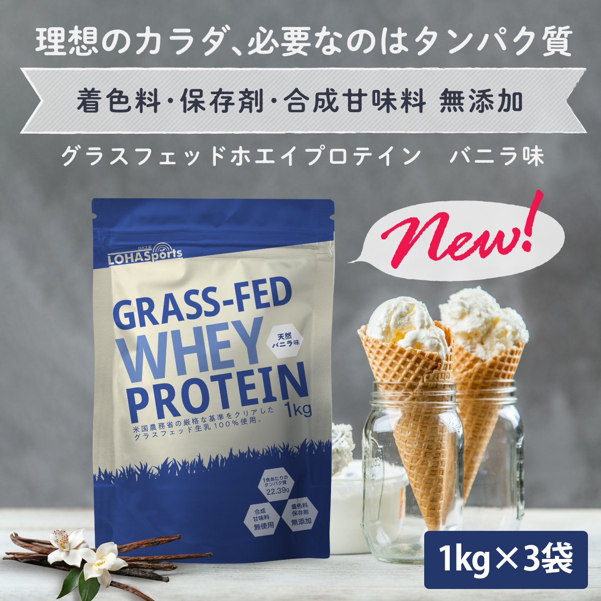 プロテイン ホエイプロテイン バニラ 3kg (1kg×3袋) グラスフェッド プロテイン アミノ酸 タンパク質 WPC 爆買