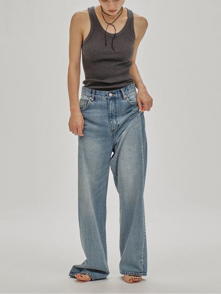 ストレートラインで全体的にゆるっとしたルーズ感のあるシルエットが魅力のデニム。腰履きで履いていただくのがおすすめです。生地端を贅沢に使用しているため、裾を折り返しても履いていただけるよう、少し長めの着丈にしています。シーズンムードたっぷりなブルーとグレーの2色展開。