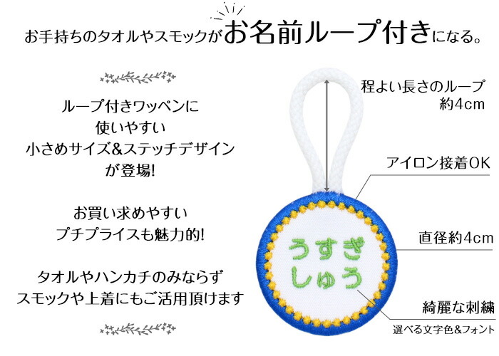 | ご注意 | ◆文字フォントが筆記体のご注文は、ローマ字のみとなります。◆1点1点丁寧に製造しておりますが、文字部分もすべて刺繍で表現しておりますため、文字の太さや仕上がりの糸埋めに個体差がでる場合がございます。また印刷とは違い、糸1本1本で表現しておりますので、小さな文字や漢字は線同士がくっつき合体してしまい、読みにくくなる場合がございます。予めご了承ください。 3枚すべて同じ文字刺繍、デザインでのご用意となります。文字違いでご希望の場合は単品商品からご注文下さい。 |