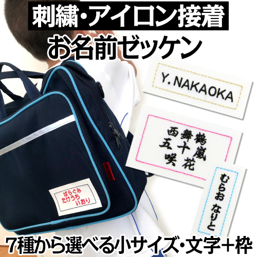 | ご注意 | ■文字は、注文画面・備考欄にご記入ください。ひらがな、漢字、数字、カタカナ、アルファベットが可能です。 ■3cm×6cmの最小サイズの場合6文字前後までがオススメです。それ以上多い場合は綺麗に刺繍できない可能性がございます。 ■クラス名やチーム名+お名前刺繍も可能です。文字揃えなどにご指定がございましたら備考欄にご記入ください。ご指定がない場合は、こちらでバランスの良いようにレイアウトさせていただきます。 ■文字刺繍の入る商品です。1点ずつお作りしているため、イメージ違いなどの理由での返品・交換はご遠慮ください。 |