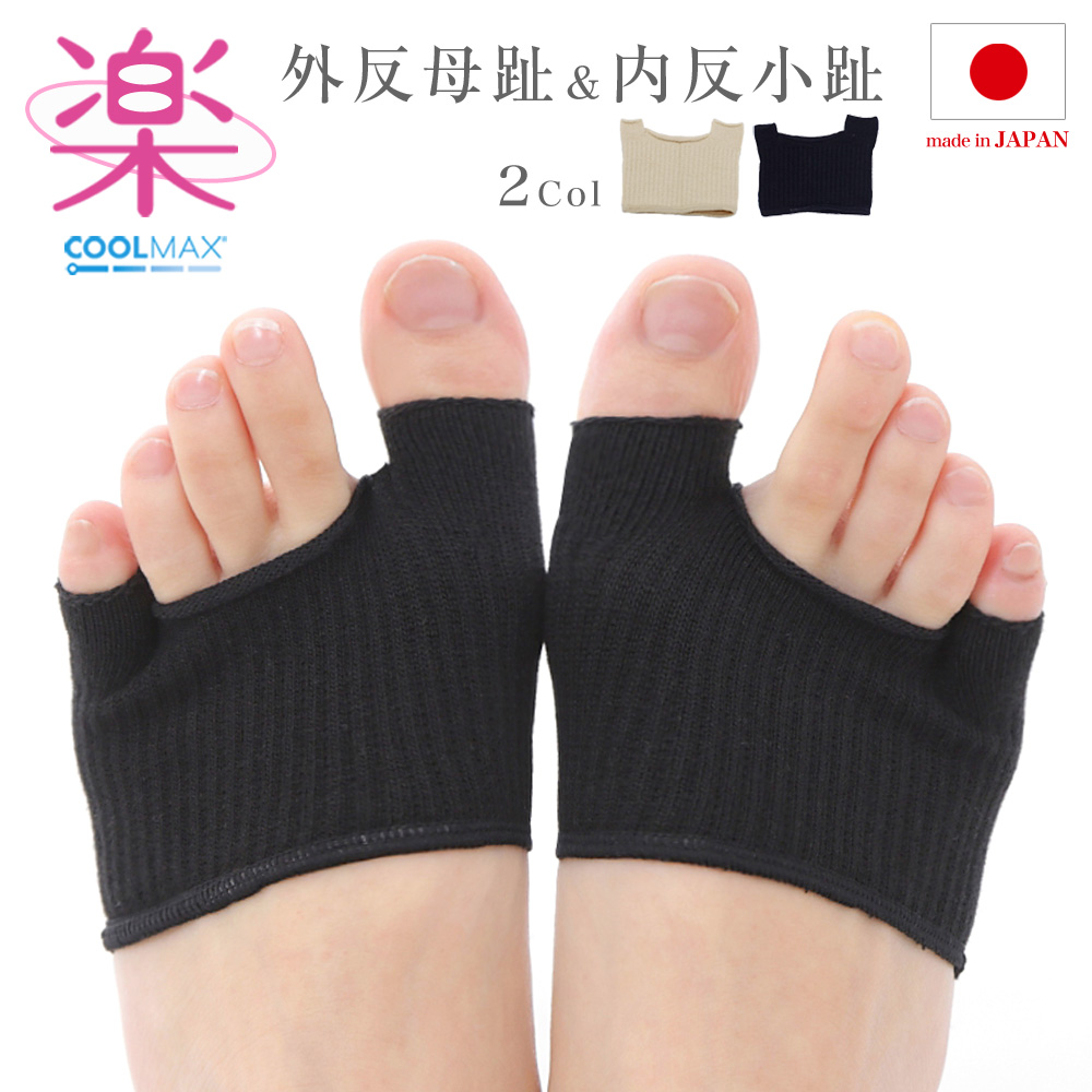 | 吸汗速乾に優れた「COOL MAX」を使用した外反母趾と内反小趾をやさしくケアしてくれる5本指サポーター。 オープントゥタイプで、つま先楽々仕様です。外反母趾と内反小趾を同時にサポートできます。 外反母趾と内反小趾の原因は、足の裏アーチを形成している中足関節の靭帯がゆるみ、中足骨の感覚が広がってしまうことで、外反母趾や内反小趾になってしまいます。このサポーターは中足関節を左右からしっかり押さえることにより、足指を開いて楽に歩行ができるよう足裏を補助し、足の甲の箇所にはサポート編みを採用。ゴムによる締め付けで、さらに外反・内反に指がそらないようにサポートします。 また薄型・綿混タイプなので、靴下やタイツの重ね履きとしてもご使用頂けます。 サポーターとしてはもちろん、冷え性対策にもどうぞ。 |