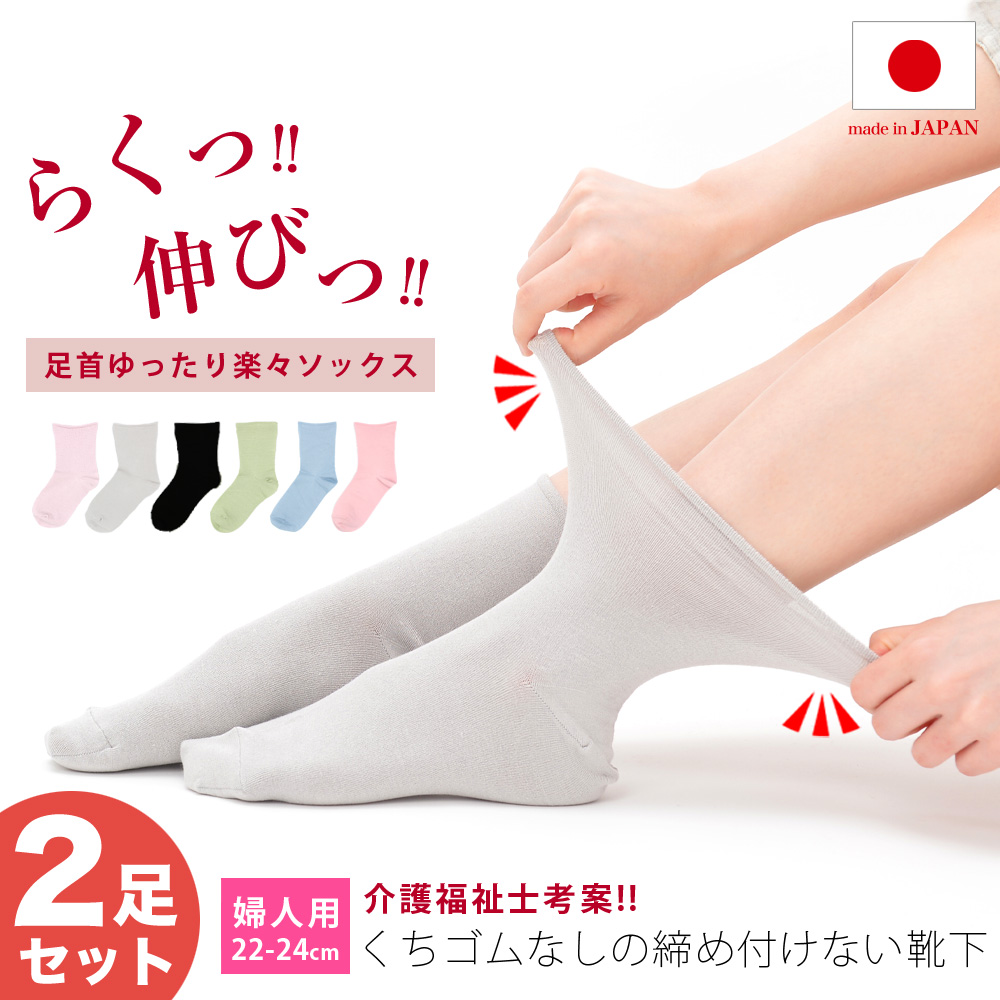 | 介護福祉士が考案しました!「くちゴムなしの締め付けない靴下」は、よく伸びるので脱ぎ履きがとても簡単なクルーソックスです。口ゴムが無く締め付けないので、むくんだ足でもゴム跡が付きにくいのが特徴。なのでくちゴムの締め付けが苦手な方はぜひお試しください。日々履き替えができるよう2足セットでお送りさせて頂きます。 (※足底滑り止めにより転倒する可能性を追求し、本製品には足底滑り止めはあえてつけておりません) |