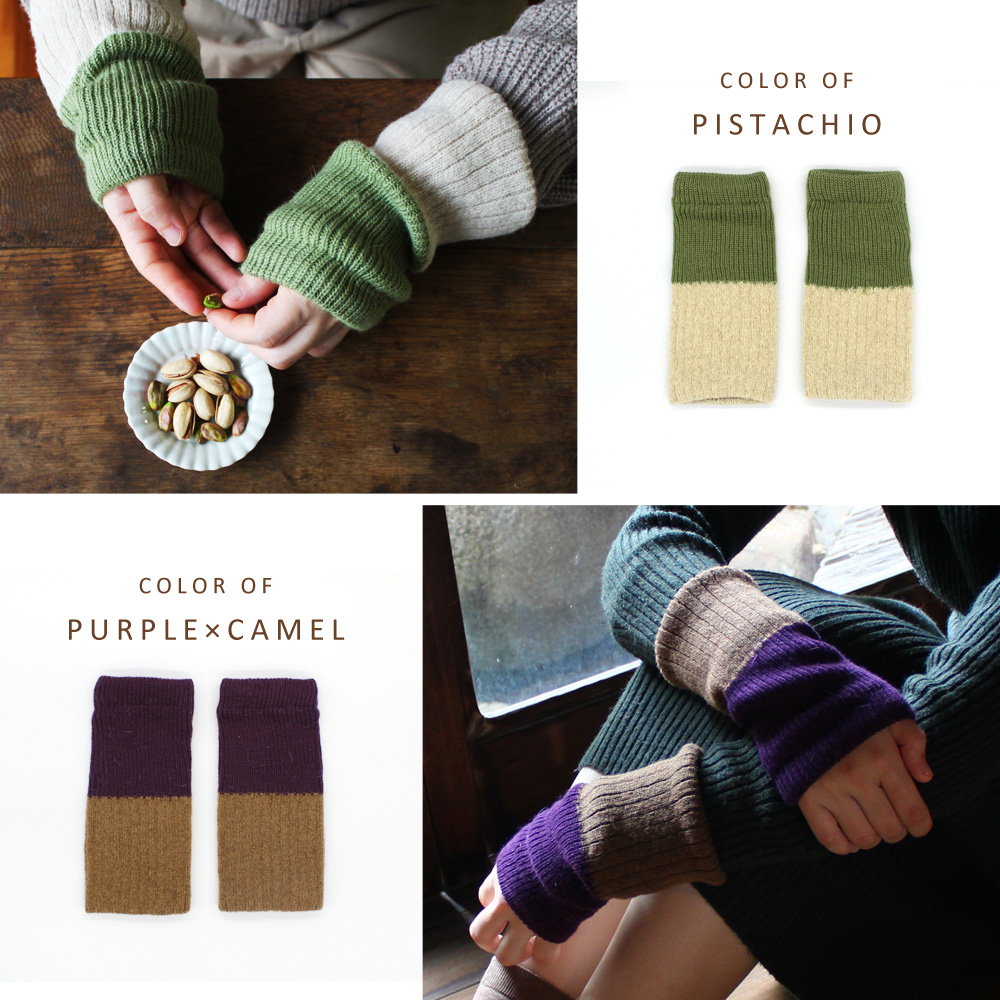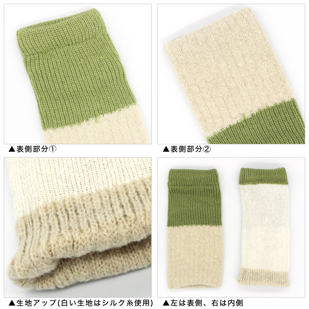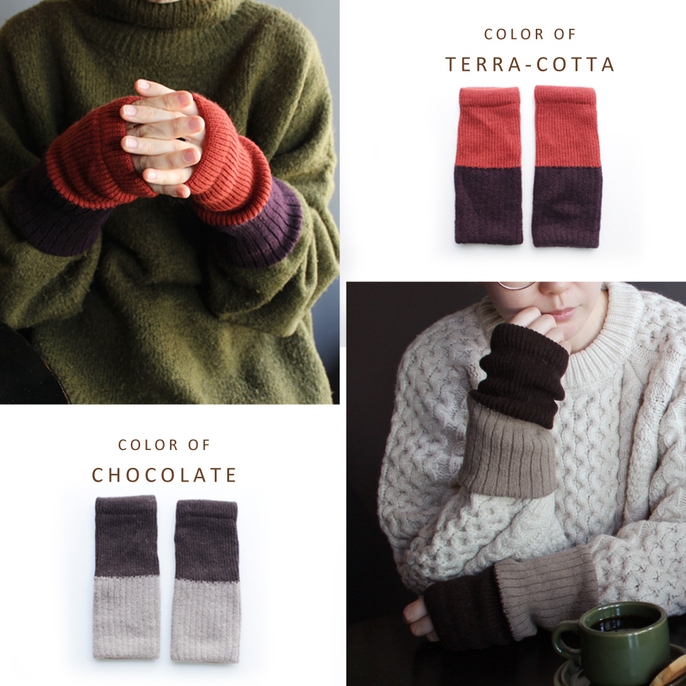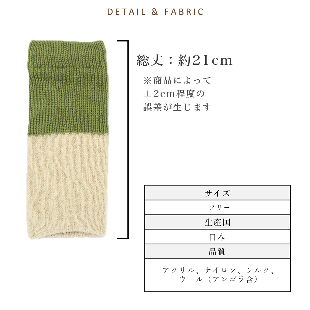 | バイカラーで気分によって色味を使い分けることができるアームウォーマーが登場!ふんわりポカポカとしているアンゴラとバルキーウールを使用したアームウォーマーは、内側にシルクを使用しているので肌触りもよく保湿性、吸湿性、通気性に優れています。直接ウールが手に当たらないので、チクチク感が少ないのはもちろん、敏感肌の方にも嬉しい一枚です。 |