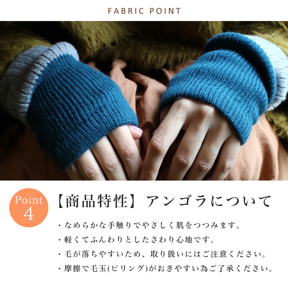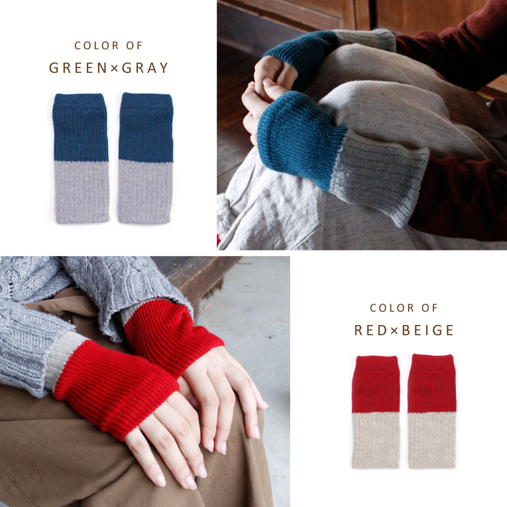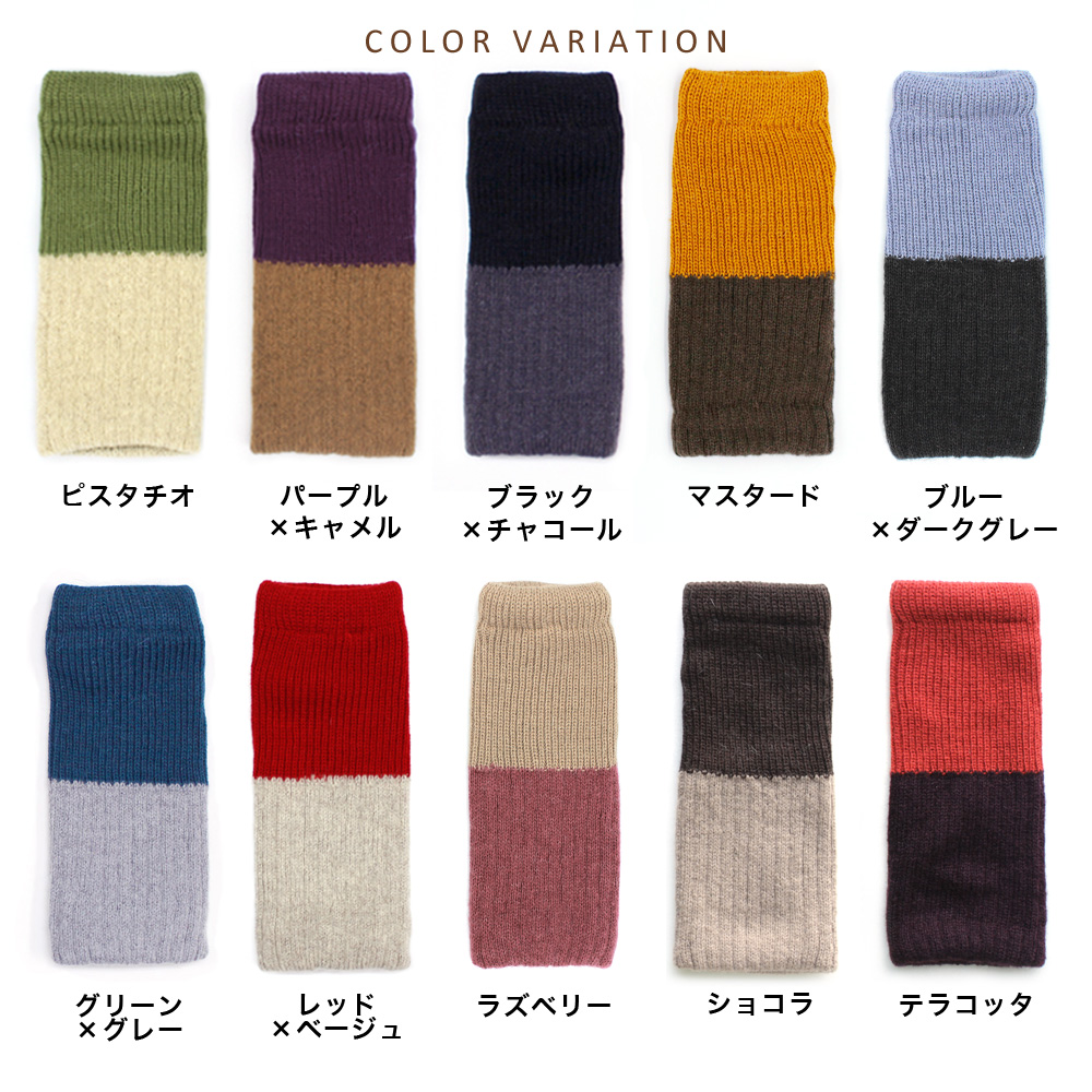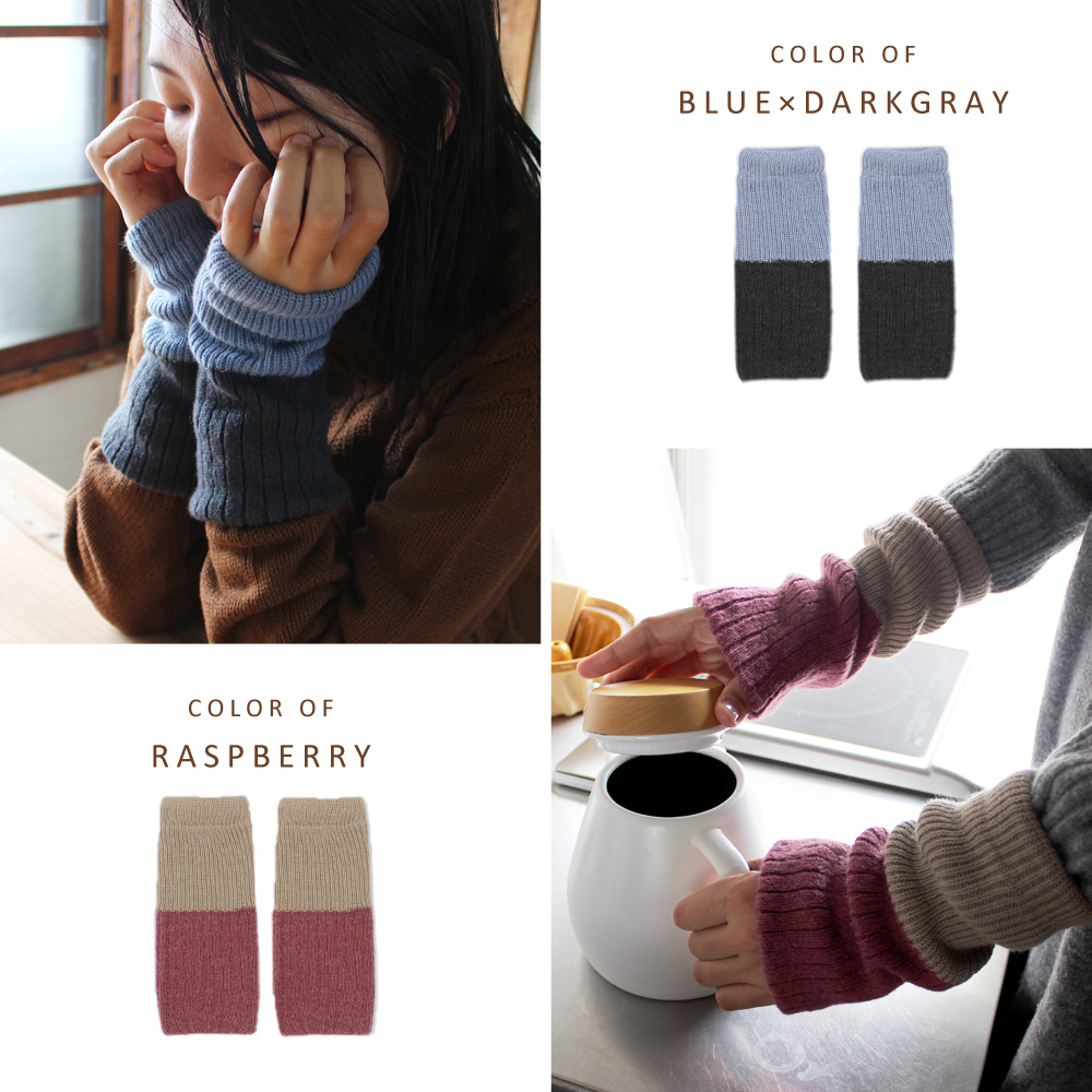 | バイカラーで気分によって色味を使い分けることができるアームウォーマーが登場!ふんわりポカポカとしているアンゴラとバルキーウールを使用したアームウォーマーは、内側にシルクを使用しているので肌触りもよく保湿性、吸湿性、通気性に優れています。直接ウールが手に当たらないので、チクチク感が少ないのはもちろん、敏感肌の方にも嬉しい一枚です。 |