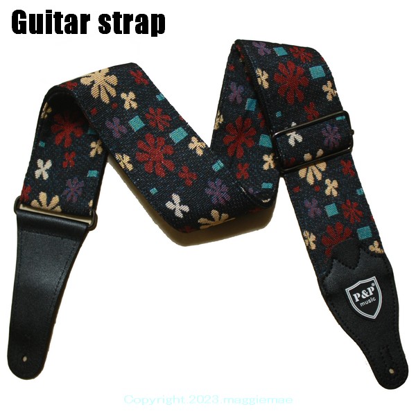 ブラック×小花柄の存在感が抜群でお洒落なギターストラップ。