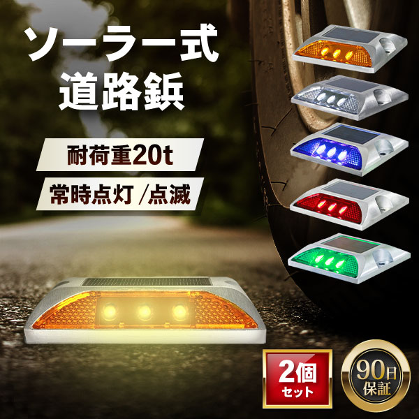 道路鋲 ソーラー LED 点滅 常時点灯 自動点灯 誘導灯 LEDライト 防水 駐車場 歩道 交差点 道路 地面 設置