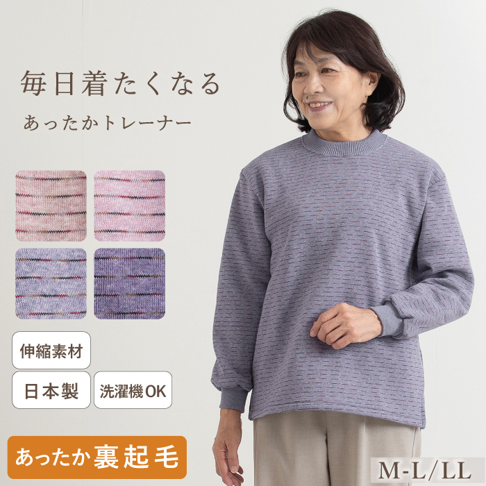 【即日発送 / 日本製 / 冬物 / 長袖 / 裏起毛】あったか ボーダー ニット トレーナー ボーダー柄 敬老の日 部屋着 ホームウェア 施設 シニア ファッション